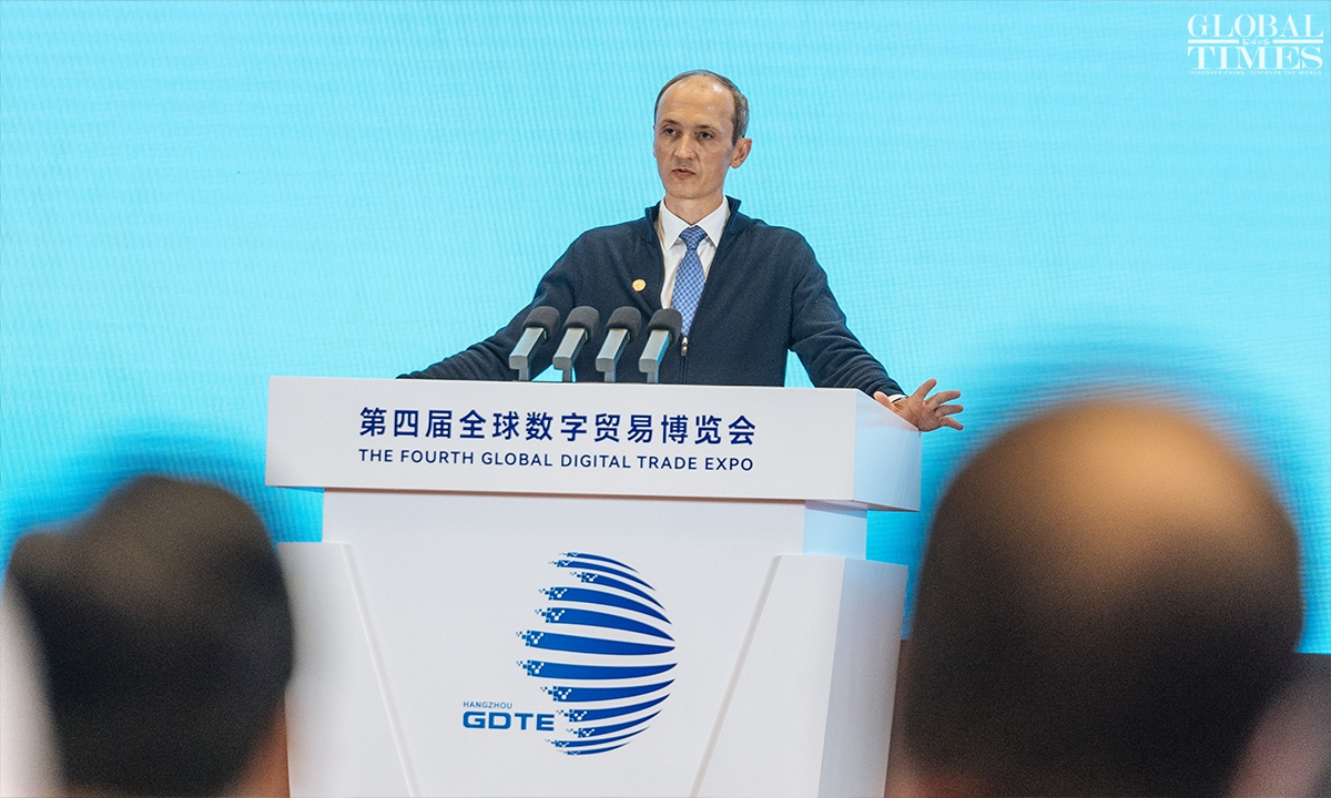 The 4th Global Digital Trade Expo (GDTE) kicks off on September 25, 2025, in Hangzhou, East China's Zhejiang Province. It is China's only national-level showcase focusing on digital trade. This year's expo accommodates 1,812 exhibitors, more than the total number of last year, among which 381 are international exhibitors, accounting for 21 percent. Companies will showcase breakthroughs like advanced AI models, robots, brain science, and high-end gaming.