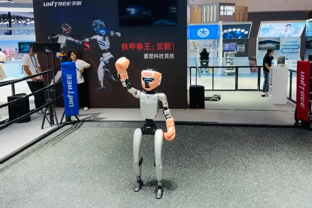A humanoid robot by Unitree Robotics waves hands to celebrate victory in a boxing match at the 4th Global Digital Trade Expo in Hangzhou, East China's Zhejiang Province, on September 25, 2025. Photo: Chi Jingyi/GT
