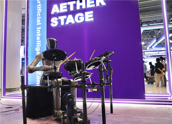 同时,在该展馆你还能看到机器人打架子鼓、吹笛子的场景,仿佛置身一场由“钢铁乐手”组成的即兴演奏会。旁边还有智能机械臂、能与观众进行对话互动的数字人,让未来科技以鲜活、接地气的方式走进大众生活。