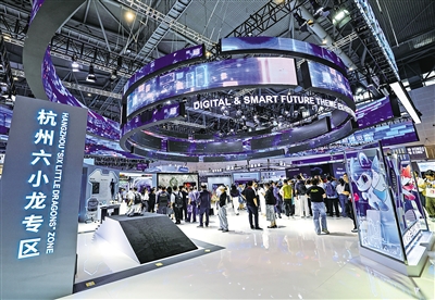 图为第四届全球数字贸易博览会数智未来主题展区的杭州六小龙专区。新华社记者 徐昱 摄