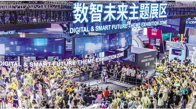 数贸会一直很重视弥合数字鸿沟。比如,今年在公众开放日专门组织了“全国科普月”现场活动,请来了二维码发明者原昌宏为大家做分享;小学生们流连在宇树格斗机器人、地卫二全球数贸星座、浙江音乐学院打造的榆林25号窟、AI可交互恐龙等展台,不禁发出感叹“数贸会也太懂小学生了”。现场还展示了陪伴老人、儿童的智能体,AI中医智能体质辨识仪等。